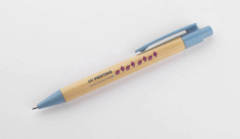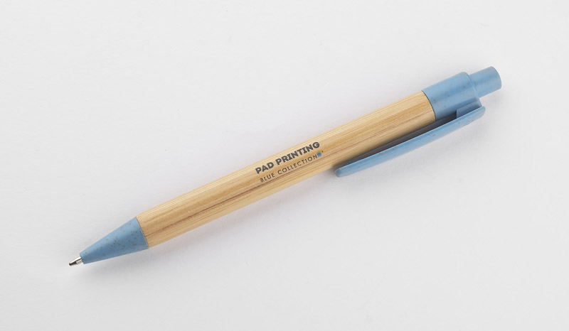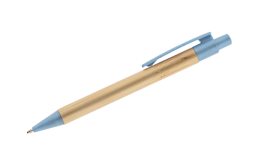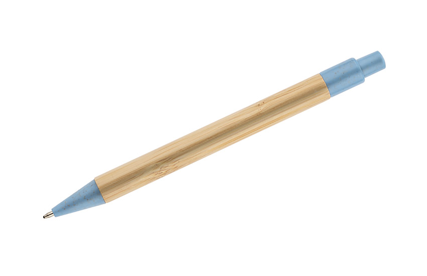 BAMMO is a classic pen made of environmentally friendly materials. The bamboo body has been combined with finishing details made of plastic with 50% straw admixture. Retractable ballpoint pen, blue refill.