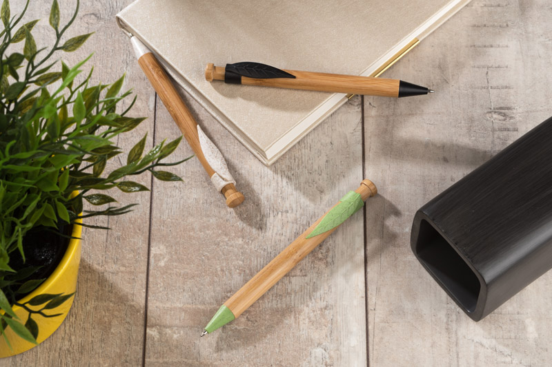FOLL pen was made for everyone who support the idea of using natural resources. The barrel of this pen is made of natural bamboo and the clip and tips are made of 40% natural straw. A leaf-shaped clip also refers to the idea of environmental protection. An automatic pen. X20 type blue refill
