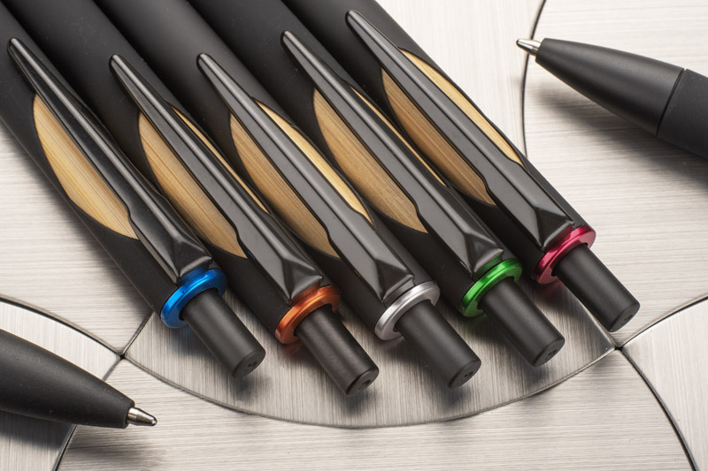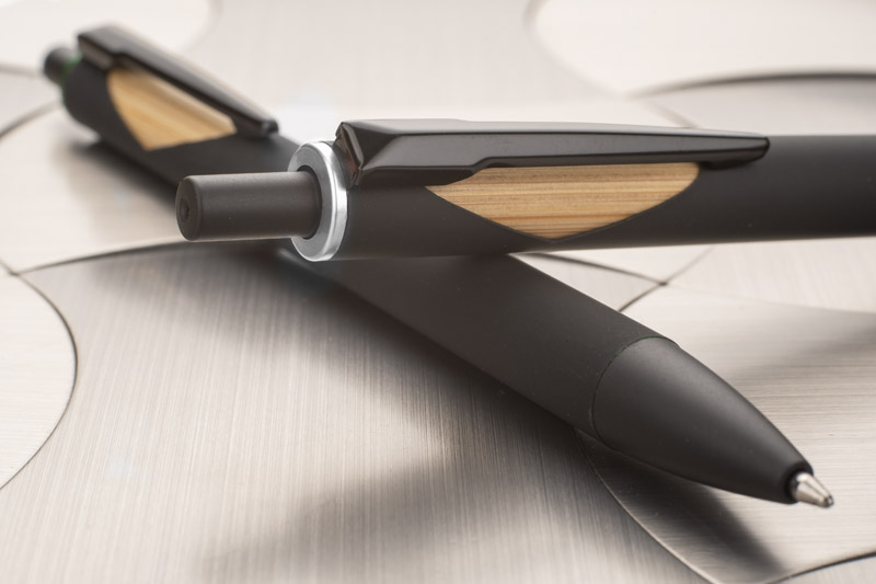 The FRANK ballpoint pen has a pleasant soft touch surface. The bamboo element and metallic finish make the pen look elegant and modern.