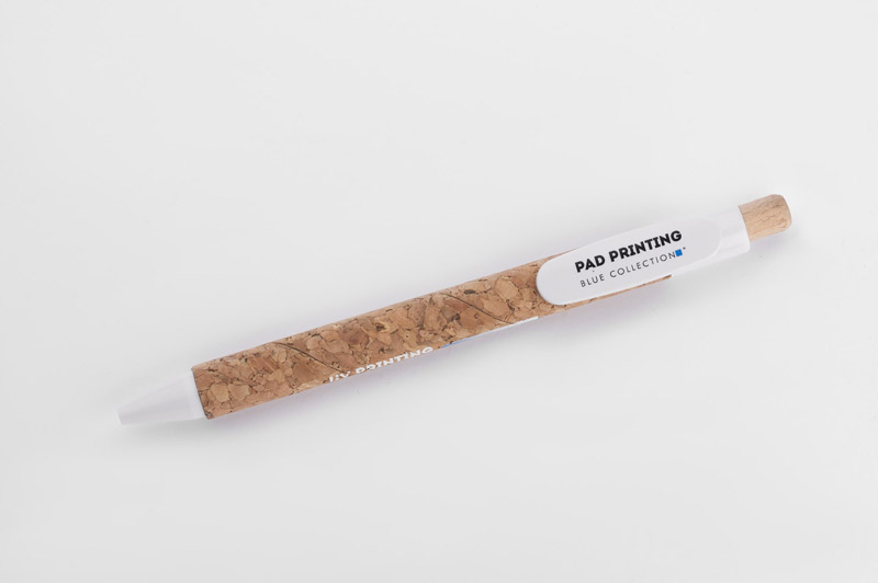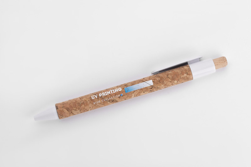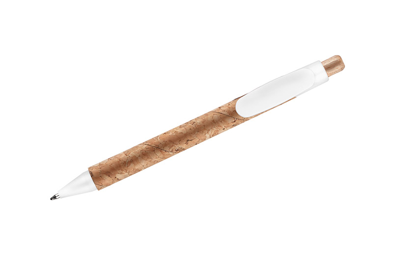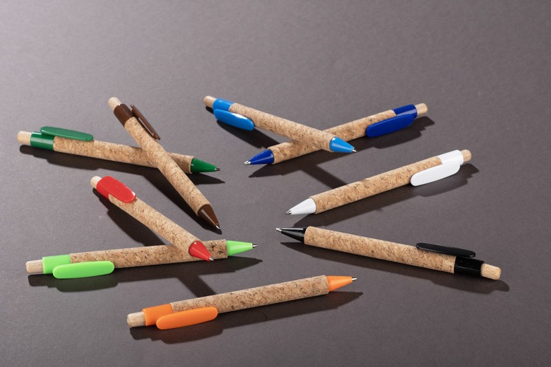 The KORTE pen refers with its looks to the idea of recycling. The barrel is made of natural cork and the button is made of wood. Plastic finishes in vivid colours add charm. Blue refill.