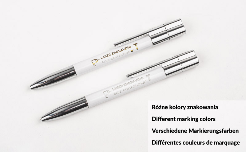 This made of aluminium elegant pen is equiped with portable USB 2.0 memory stick (capacity 16 GB). Memory stick has been placed just above the clip. Write speed 4,5 MB/s , read speed 24 MB/s. This product has 1 year warranty and CE certificate. USB memory stick comes with a 5 years limited warranty.