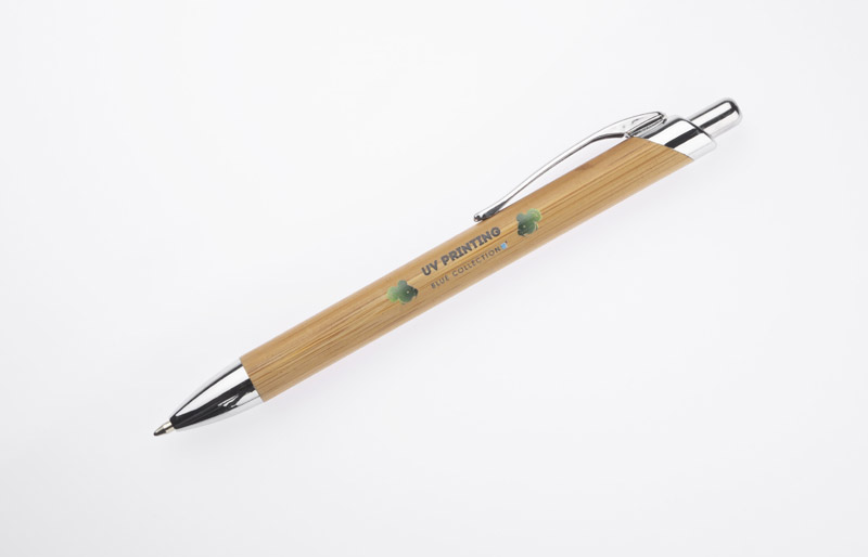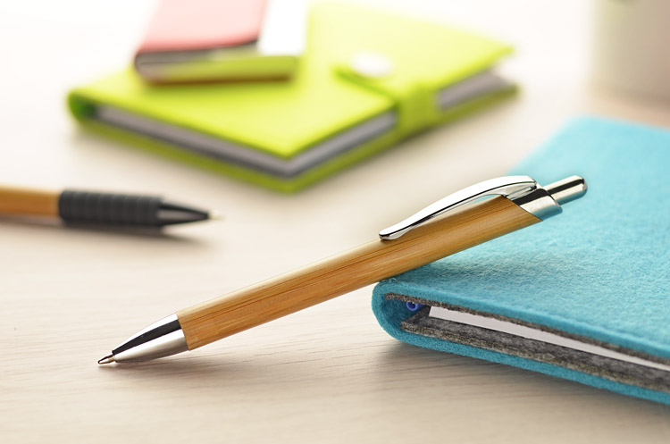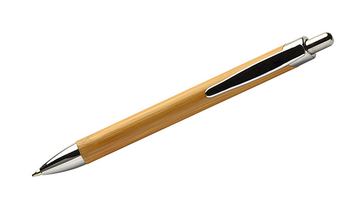 Stylish ball pen with a bamboo body. Incredibly nice in touch texture of the wooden body will interest every user. Ball pen is finished with metal elements in silver colour. Marking can be placed on the body of the ball pen.