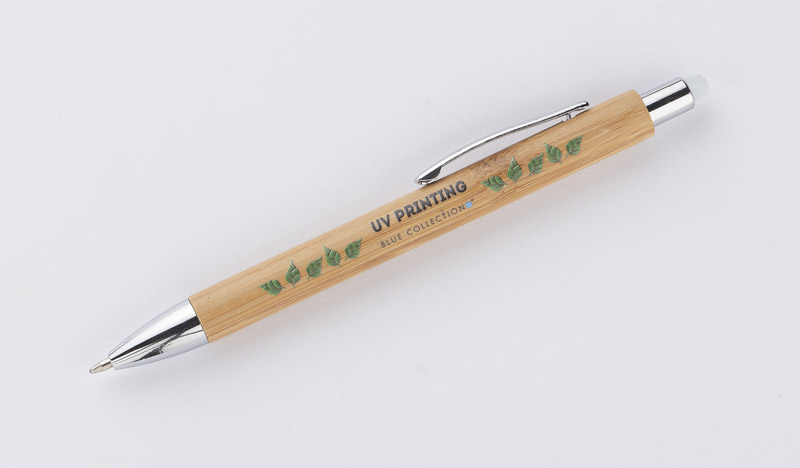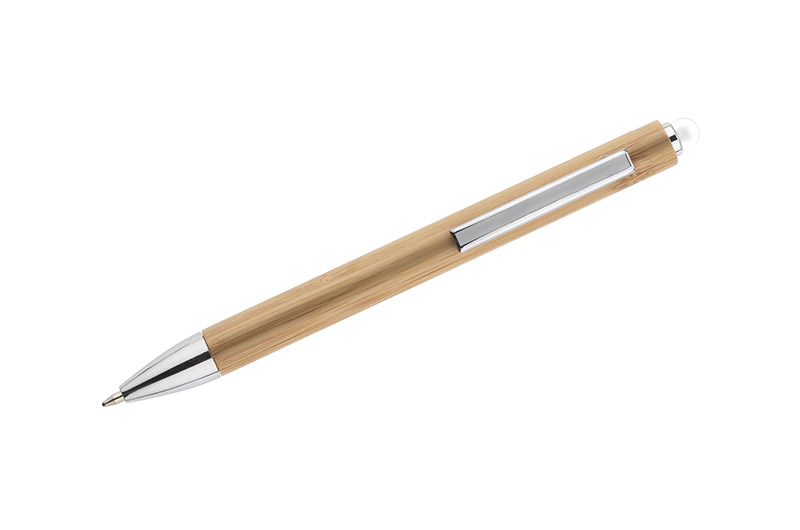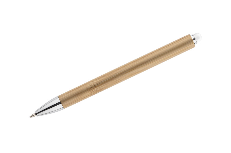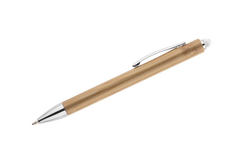 Body of TUSO is made entirely of bamboo. Chrome finishes give add to its elegance. The colorful tip designed to use with touch screens is an interesting decoration. Automatic ballpoint pen. G2 type refill in blue.