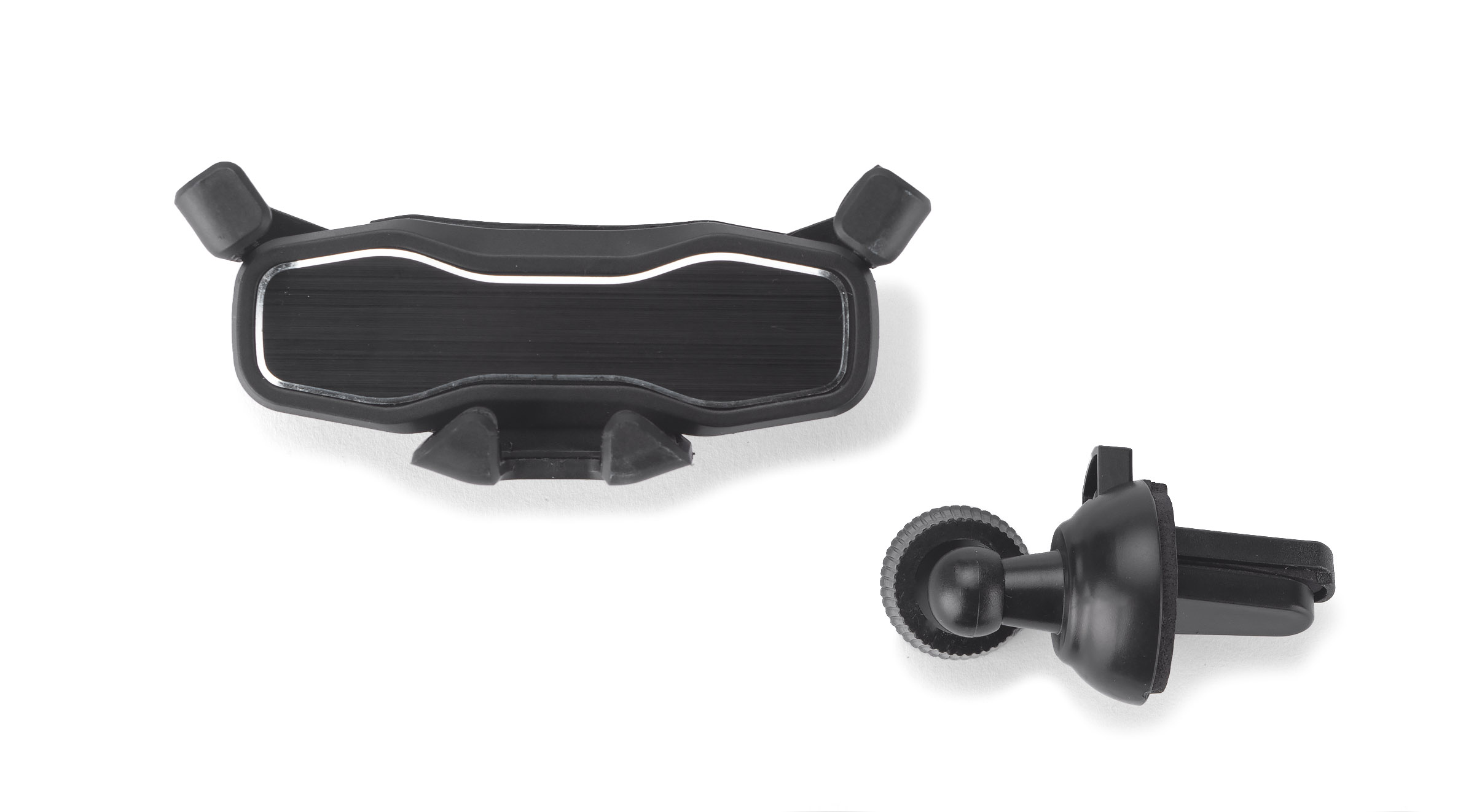 The AMPLEX car phone holder is a very convenient gravity holder for installation in the car’s air vent. When the phone is in the holder, the pressure force causes the arms to raise and tighten, and the device is effectively prevented from falling. The handles are finished with rubber, which prevents both scratching the phone and ensures high stability. The metal plate on the front is a perfect visual and marking place. The holder fits phones with a width of 70-85 mm, the phone should not be in the case.