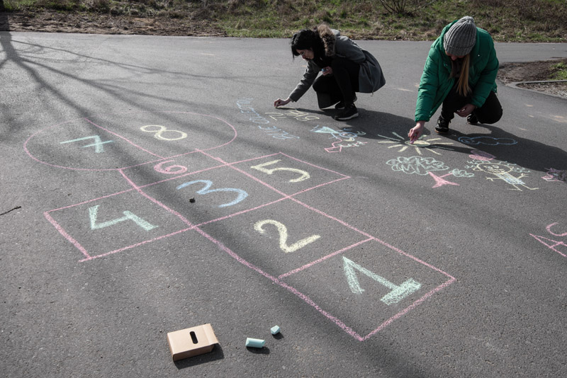 Chalk in 4 colours packed in a brown cardboard box. Ideal for playing in the backyard as well as at various events.