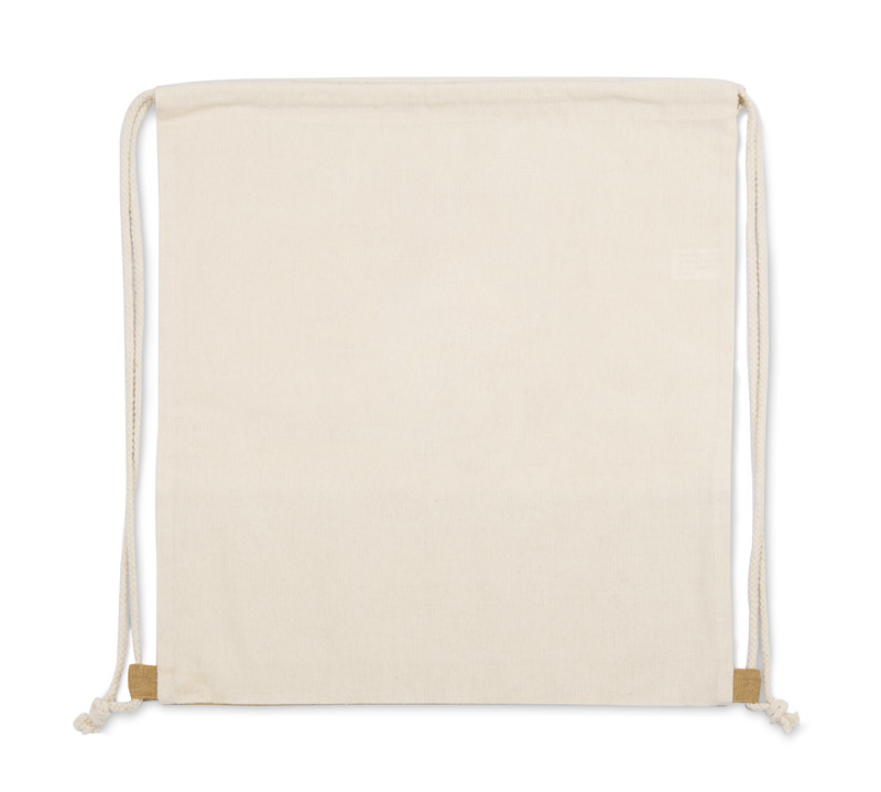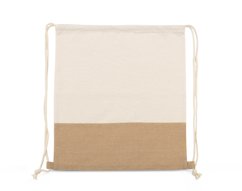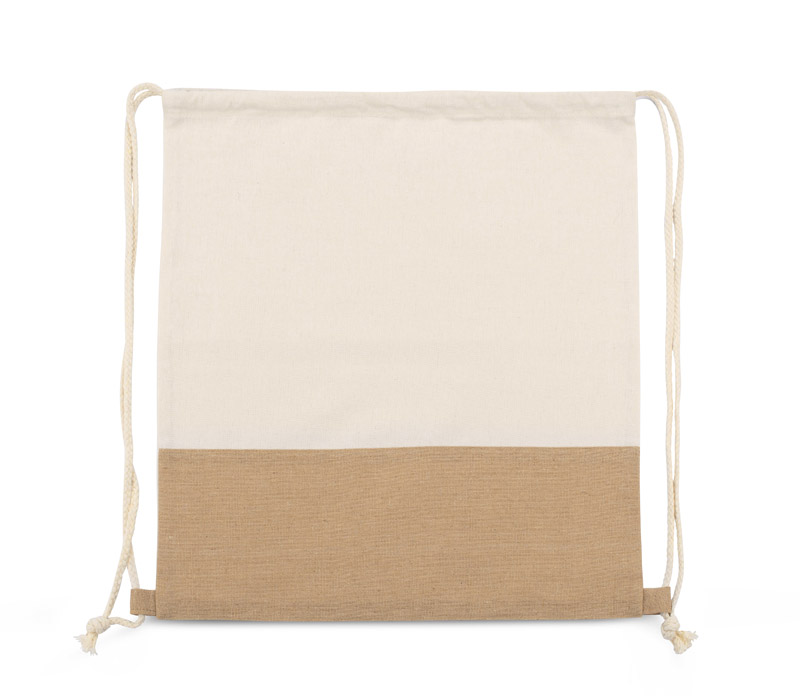 The JUTIK bag is made of cotton (160g/m2) combined with a jute-like material. The whole looks very natural and interesting. The bag has one compartment and is laced with cotton strings.