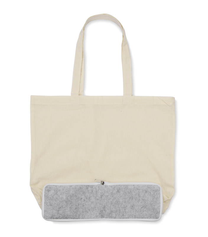 Meet the FLIN cotton bag, which combines functionality with convenience. Made from high quality cotton, it provides lightness and durability, while the felt bottom adds to its strength. Thanks to the zipper in the bottom, the bag folds down to a compact size for easy storage and transportation. FLIN is the perfect choice for shopping, outings and everyday activities. Enjoy the convenience and practical design with a reliable companion for every occasion.