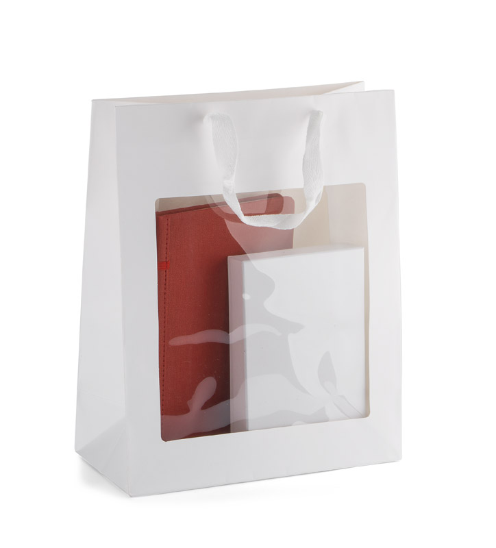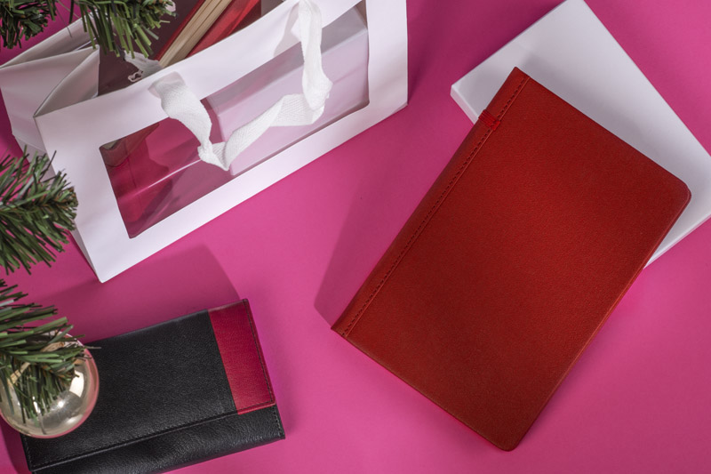 The HER gift set is an ideal proposition for women. It is aesthetic and tasteful. The set includes a wallet, notebook and a gift bag. The wallet is made of black genuine leather with a red insert, which makes the wallet look very interesting and extraordinary. It has an outer zipped pocket. Inside there are 5 tabs for credit cards, 5 pockets for documents and a zippered pocket. The notebook is made of eco-leather. It has a hard cover finished with a pleasant in touch texture. The whole set can be packed in the attached gift bag. It will beautifully display the gift packed in it. The bag is made of paper.