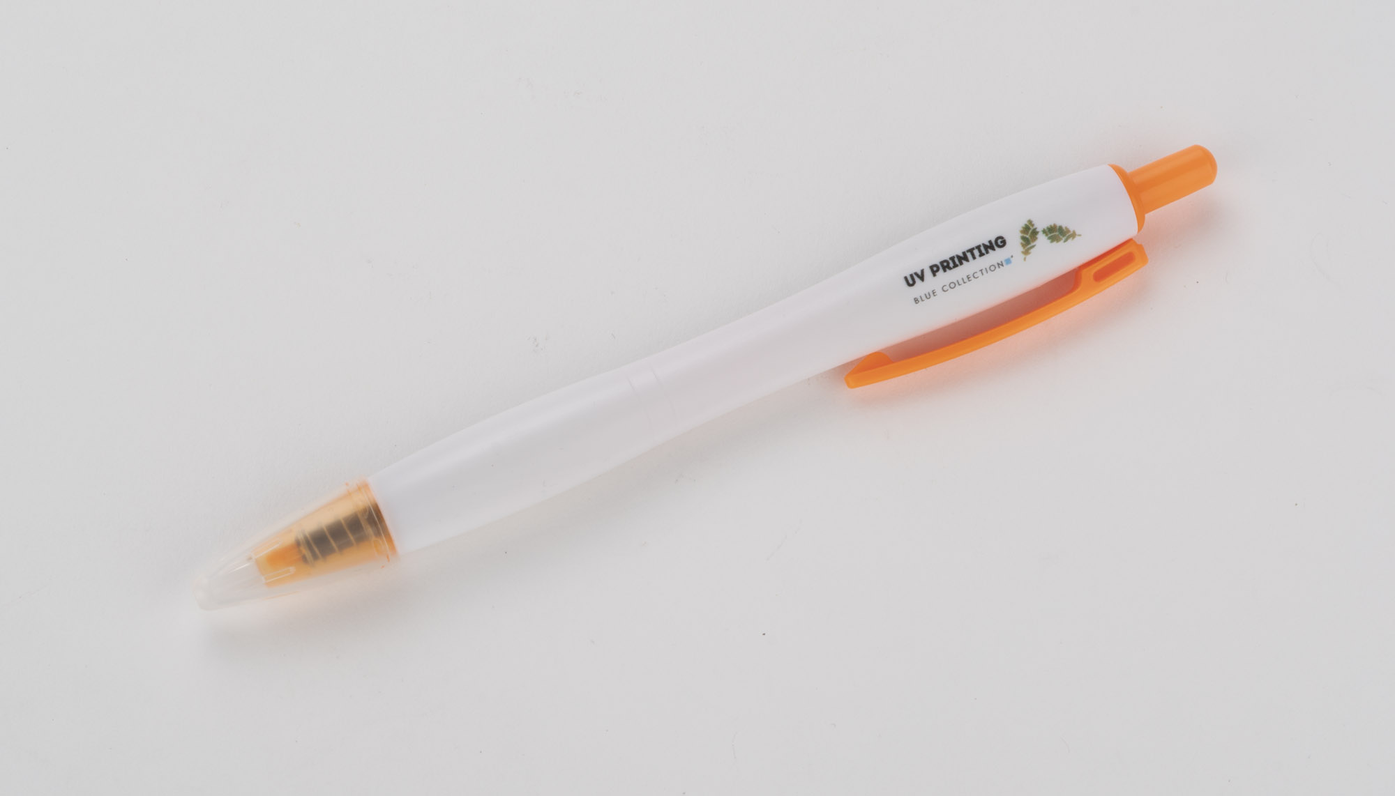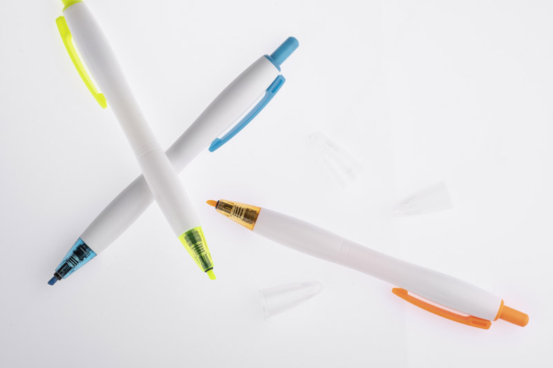 SNAP is a new type of highlighter in the form of an automatic pen. The highlighter is turned on and off by pressing the button on the top. The highlighter is additionally secured against drying out by a cap. The body is made of white plastic with a clip and tips matching the color of the highlighter.