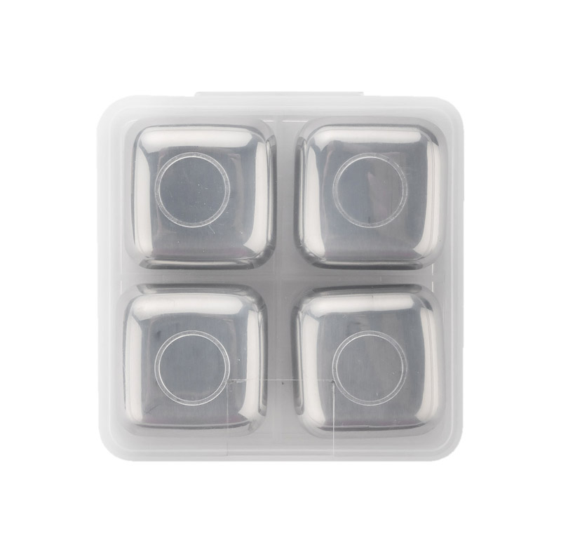 The cooling cubes for drinks are made of high-standard stainless steel and packed in a convenient plastic case. The set contains 4 cubes, which should be placed in the freezer for a minimum of 4 hours to cool down to the desired temperature and then put into a glass with a drink. An excellent gadget replacing traditional ice cubes, as it does not dilute the drink.