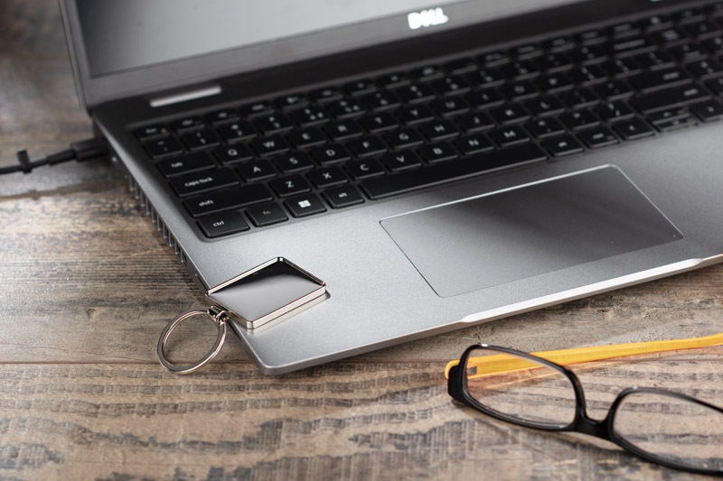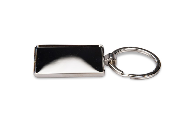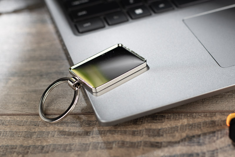 MOTI is a rectangular keychain made of high-quality metal, designed for doming marking service. This technology allows for the precise application of a company’s logo in the form of an aesthetic resin sticker, which creates a 3D-like effect.