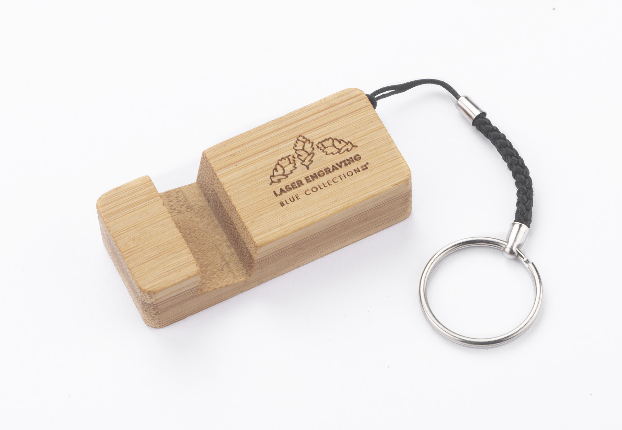 PENDE is a practical bamboo keychain that can also be used as a phone stand.