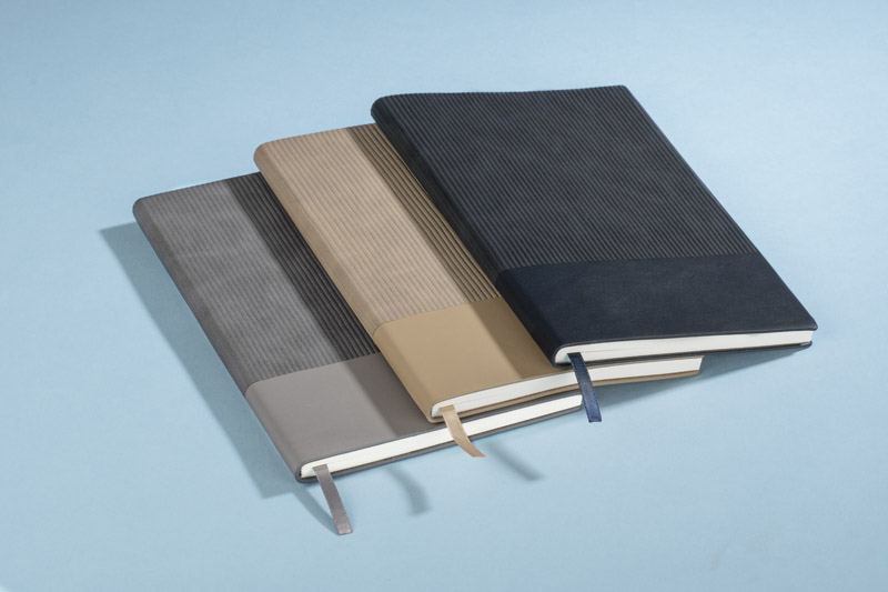 The FLAF notebook in A5 format is available in 3 subdued and elegant colors. Notebook in a soft cover made of combined materials: eco-leather and corduroy imitation, which is extremely pleasant to the touch. Contains 80 polka dot sheets. Inside, there is also a practical ribbon – bookmark.