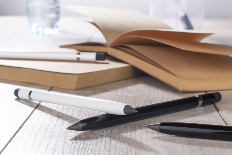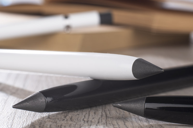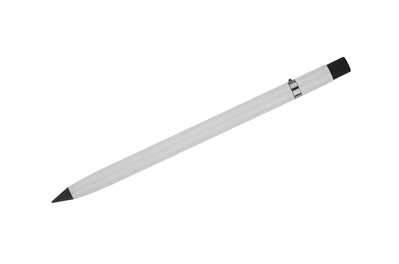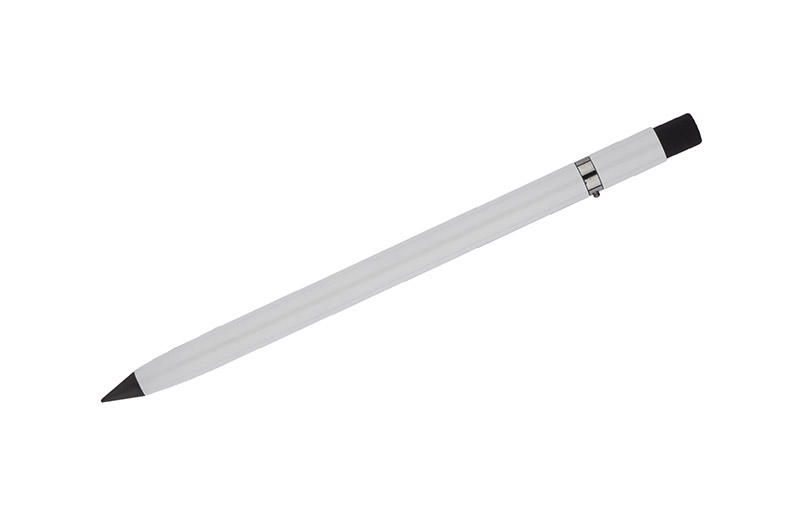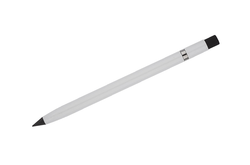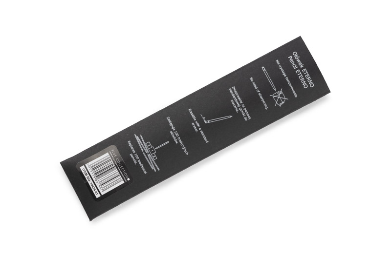 ETERNO is a new type of pencil that is always sharpened and always writes. Traditional graphite has been replaced by a special hardened stylus, which offers writing comfort similar to a freshly sharpened pencil. The aluminum body ensures years of durability. There is an eraser at the top that will erase the notes made with an ETERNO pencil (you can use other standard erasers as well). The pencil is part of the eco-trend, which makes it possible to minimize the amount of waste and raw materials in the manufacture of everyday objects. Packed in a black paper case with an infographic on the back.