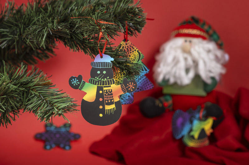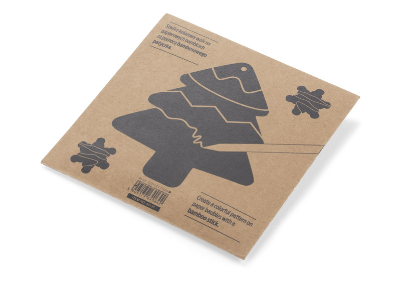 Festive set of Christmas tree hangers. With the help of a bamboo stick, you can design your own unique baubles in a simple and fun way. The set includes 4 shapes: a bell, a star, a Christmas tree, and a snowman. Made of paper. Packed in a brown envelope.