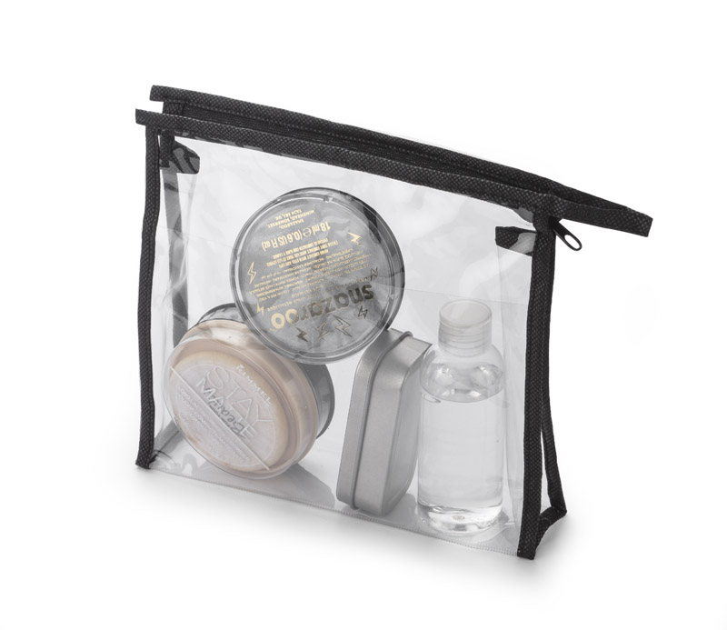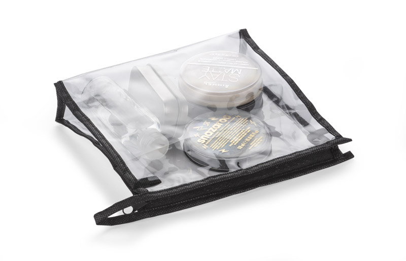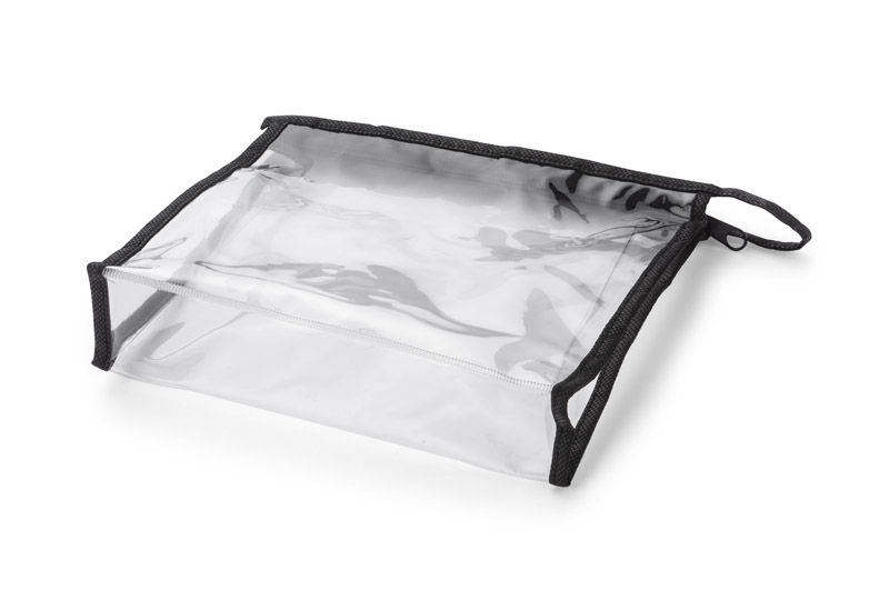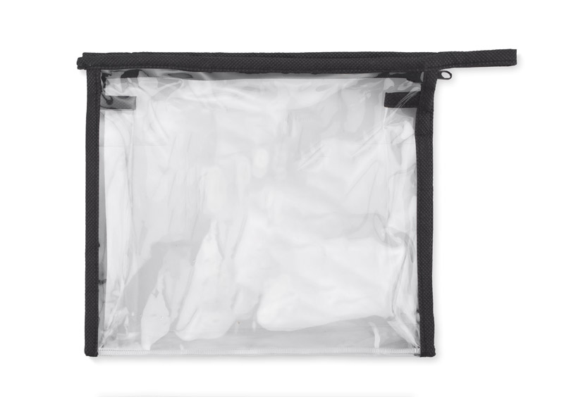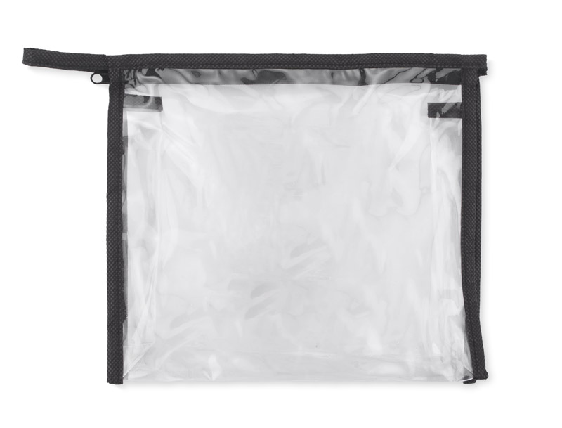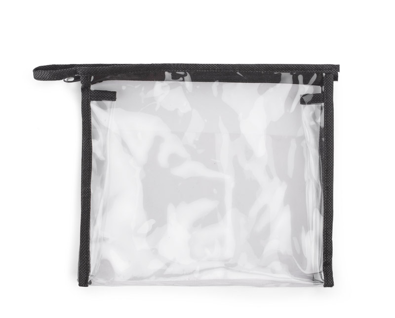 Transparent wash bag with zipper. Made of PVC and non-woven polypropylene. Perfect as a handbag for storing liquids in hand luggage.