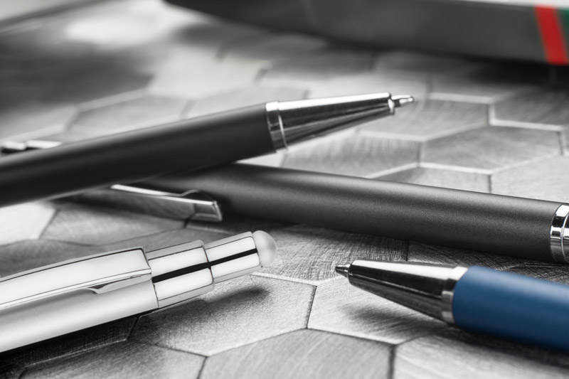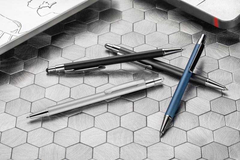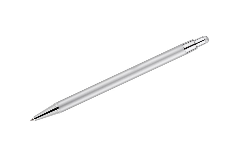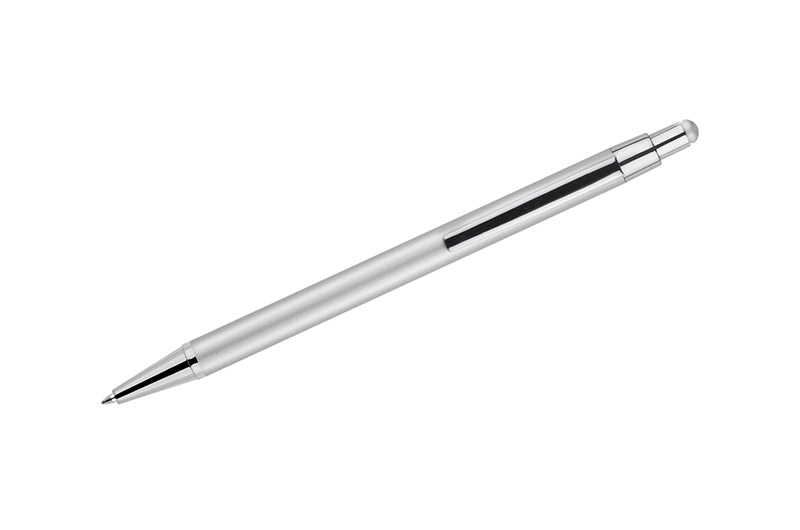 DAWEI is a classic thin pen made of metal in calm tones for lovers of timeless universal design. At the top, touch tip for touch screens in colour matching the barrel. An automatic pen. X20 type blue 1.0 mm-thick refill.