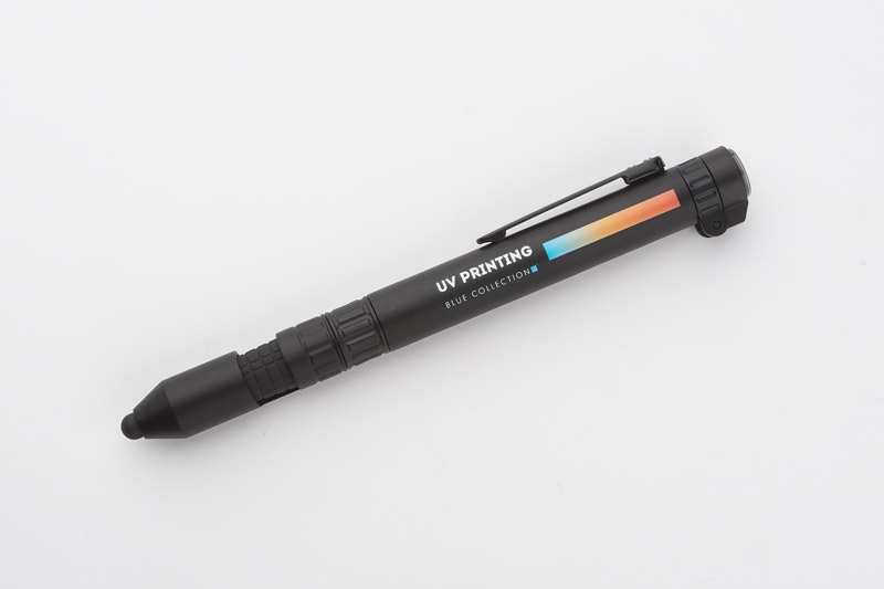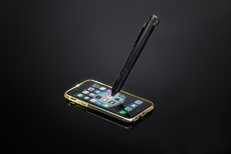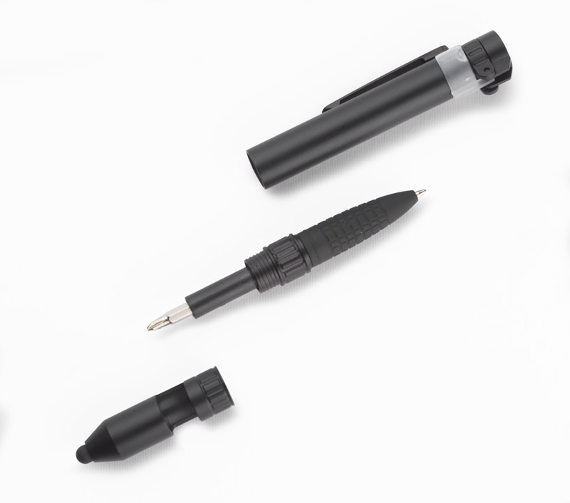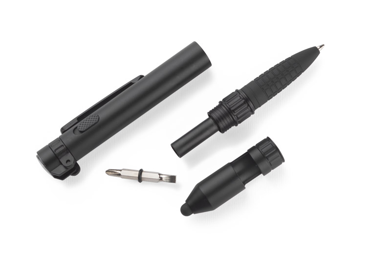 GYVER will be an ideal gift for real gadget lovers who expect surprising functions from advertising gifts. This inconspicuous small item has 7 functions: pen, touch pen, phone stand, flash light, 2 screwdrivers, compass. Blue refill.
