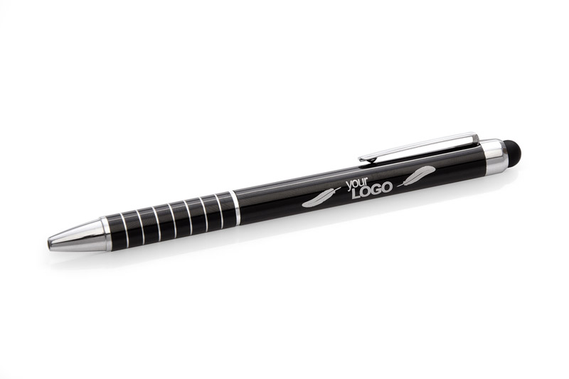 Touch pen and ball pen in one. It makes it easy to work on tablets and smart phones. The refill – blue. Logo might be engraved on the pen.