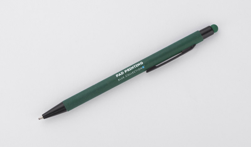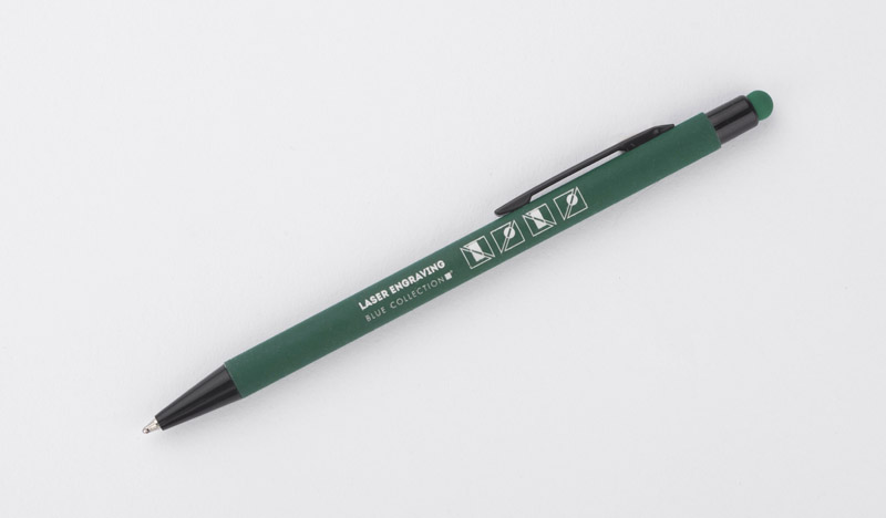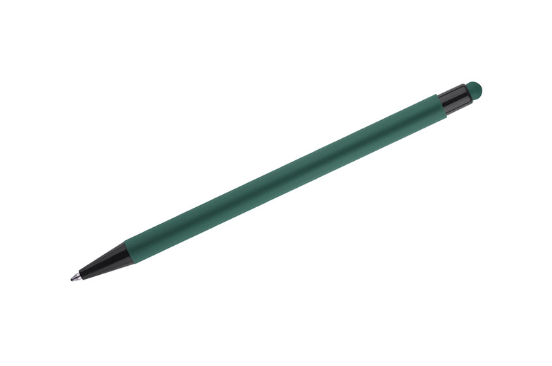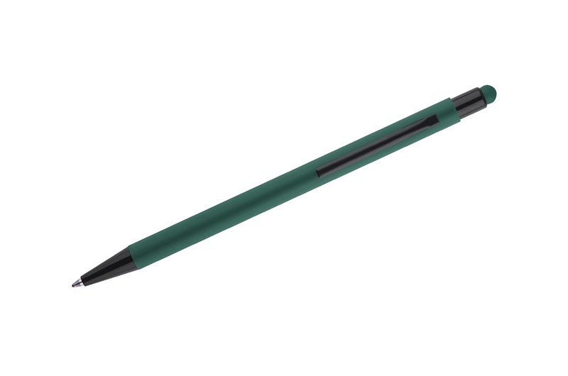 Classic, thin PRIM pen made of aluminium with a rubberised soft touch surface. At the top, a tip for operating touch screens in a colour matching the barrel of the pen. Black finish. An automatic pen. X20 type blue refill.